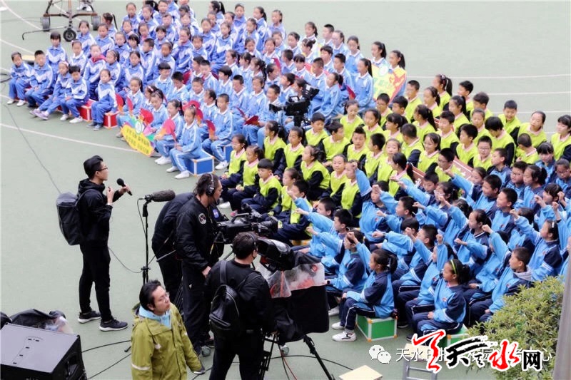 天天天水网讯 4月12日, CCTV少儿频道《智力快车·校际大比拼》走进天水,来到了天水市新华门小学录制《智力快车·校际大比拼》节目。此次节目选取了天水市新华门小学、天水市实验小学、天水市解一小学和天水市公园小学四所学校为参赛单位。近200名学生齐聚新华门小学参与此次节目录制。