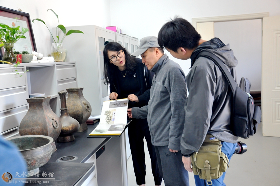 天天天水网讯 4月16日上午,重庆市沙坪坝区博物馆馆长郭小智一行来天水市博物馆参观交流。在天水市博物馆馆长李宁民的陪同下,实地了解了博物馆的陈列布展、古建保护维修以及安防设施等。并就如何最大限度保护利用古建筑进行专题展览,以及人才配置和管理等问题进行了交流。