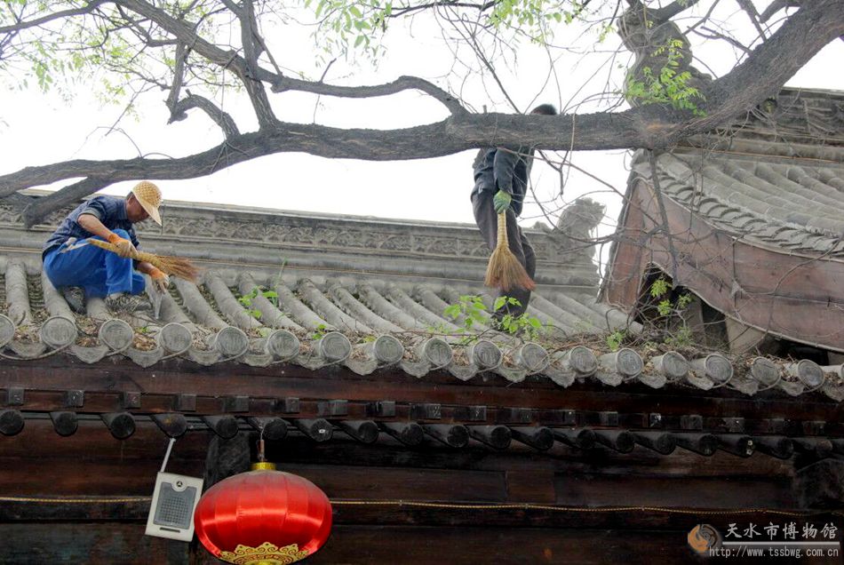 天天天水网讯天水民俗博物馆以胡氏古民居建筑(南宅子)为载体,2003年天水市博物馆对其进行保护维修并对外开放。南宅子屋面由于积土较厚,瓦片缝隙间滋长出野草。时值春季,各种杂草种子开始生长,致使南宅子屋顶瓦片的缝隙被植物根系越撑越大,屋顶的防水性能变差,雨水可能会渗入,透过屋面防水层直接破坏屋顶的木梁架,影响参观环境,并存在安全隐患。