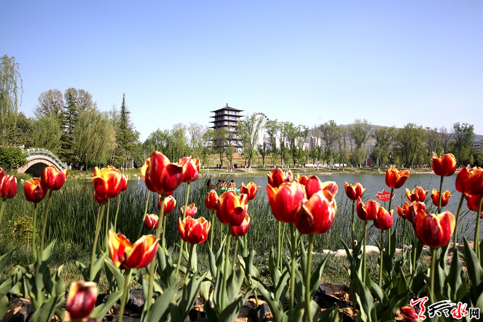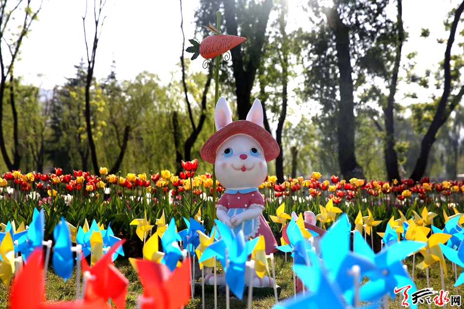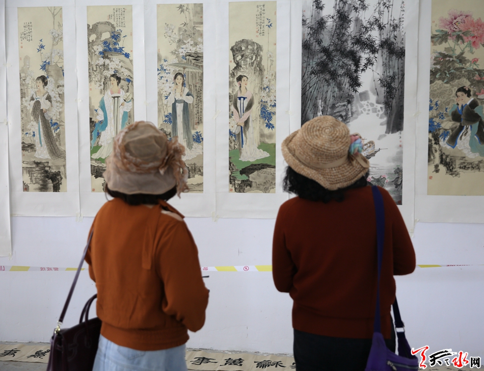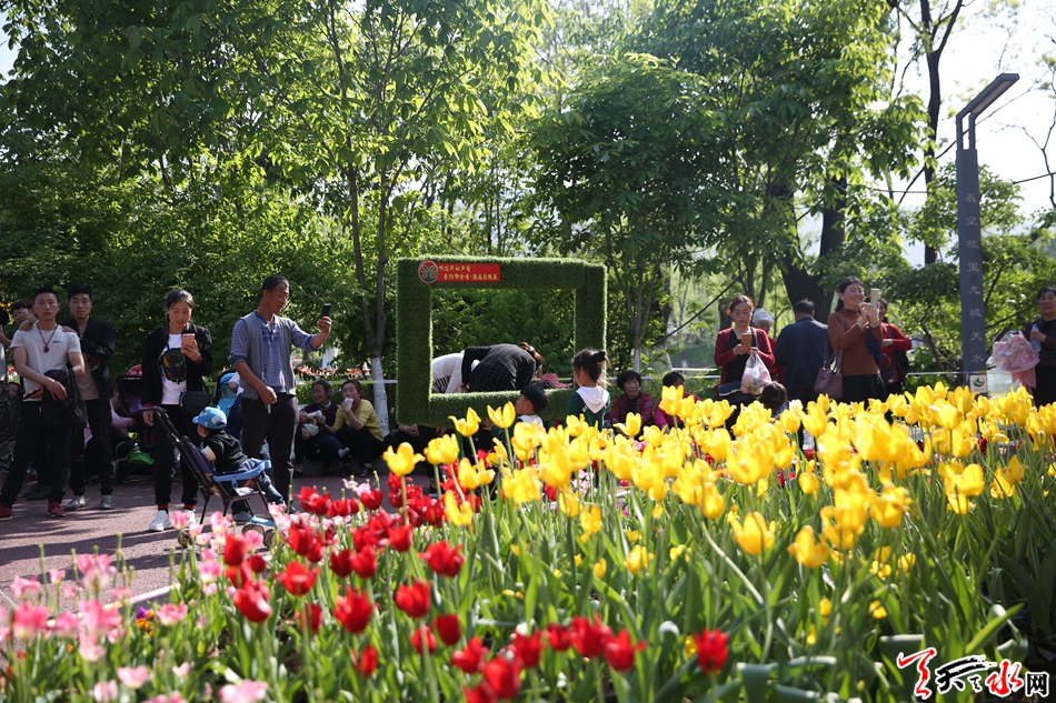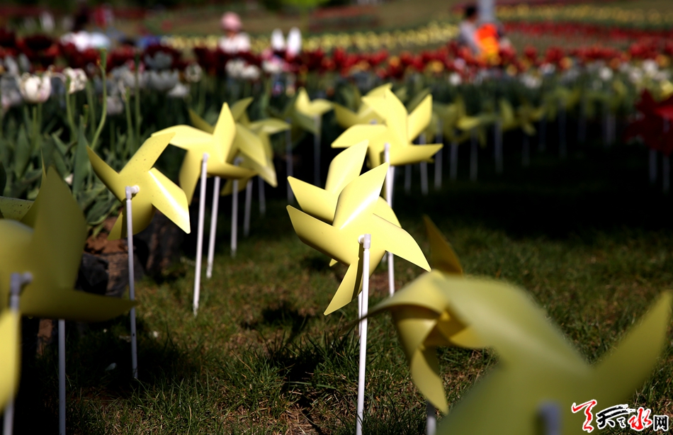 天天天水网讯(通讯员 吴海勇)绚丽多姿的郁金香花田,阵阵芳香,小风车悠悠的转着,马跑泉公园内赏花的游客络绎不绝;花田旁书画展区也迎来了一波又一波的爱画的市民,一幅幅精美的工笔画仕女图吸引游客驻足观看。