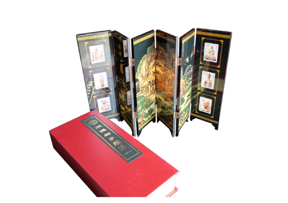 麦积山石窟邮票漆艺小屏风摆件作者:刘爱军申报单位:天水景晟轩漆艺有限公司