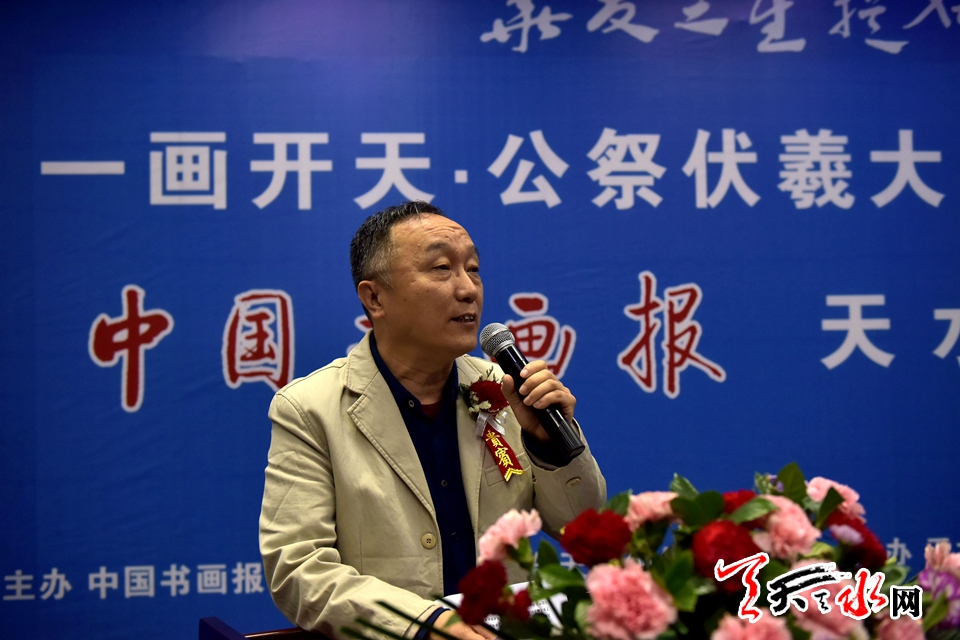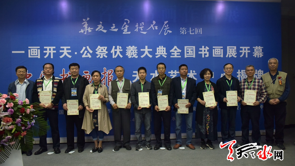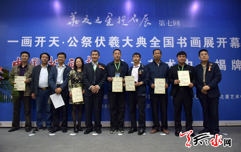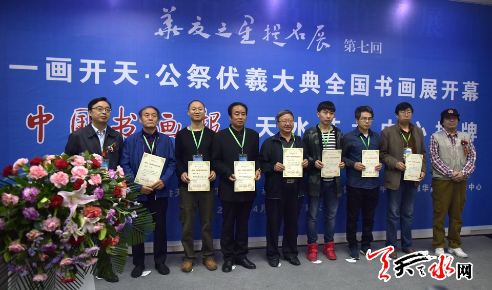天天天水网讯(记者何永德)4月21日,“华夏之星提名展 第七回暨一画开天·公祭伏羲大典全国书画展开幕式、中国书画报天水艺术中心揭牌仪式”在天水金龙大酒店中国美术家协会天水创作基地举行,来自全国的书画名家、“华夏之星”和天水本土书画家将齐聚一堂,在一年一度的“公祭中华人文始祖伏羲大典”前夕,感怀伏羲功绩、传承丝路文明,用书画艺术展示华夏儿女的精神风貌。仪式上还将为荣获“华夏之星·中国书画人才”第三届评选活动提名、参加“提名展”的书画家颁发证书。