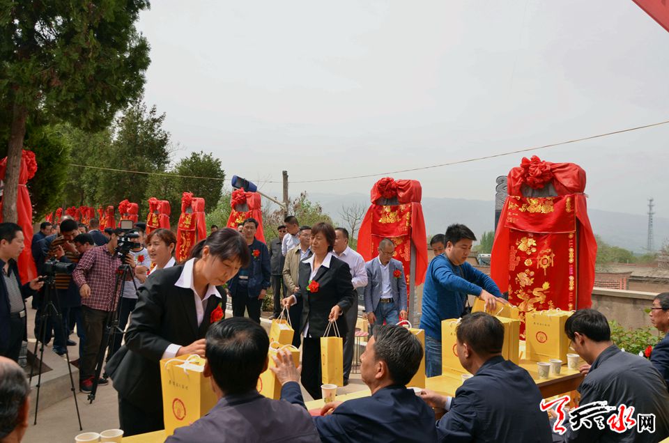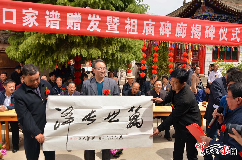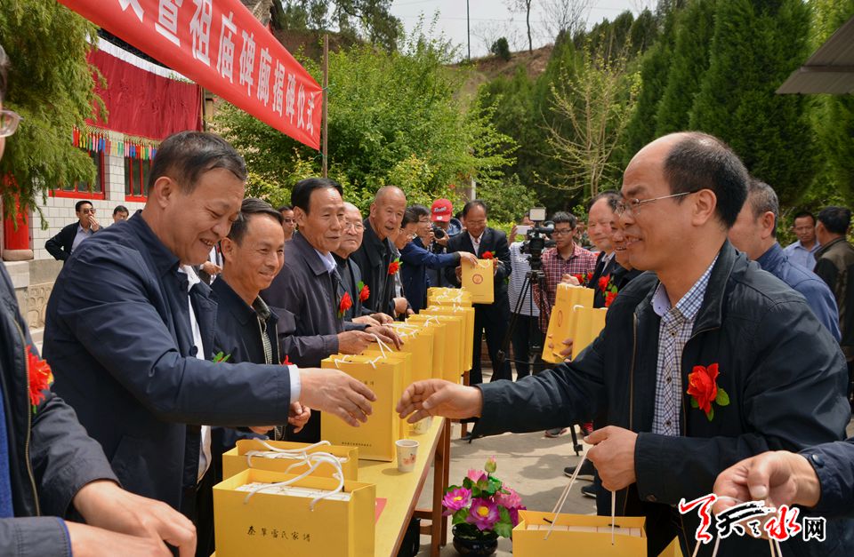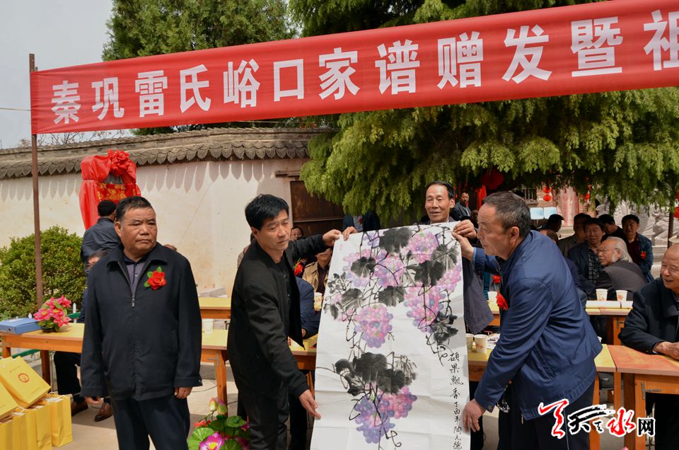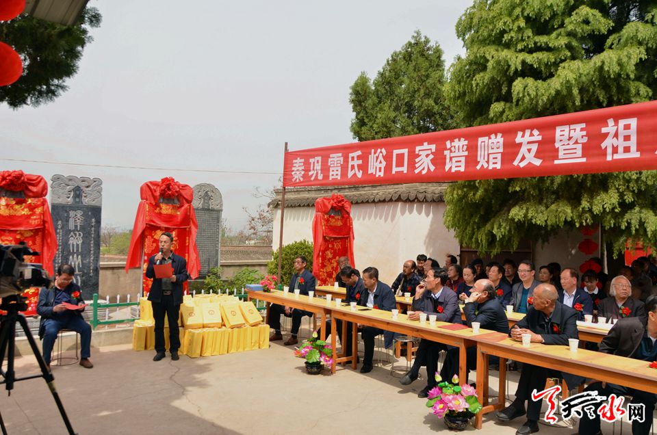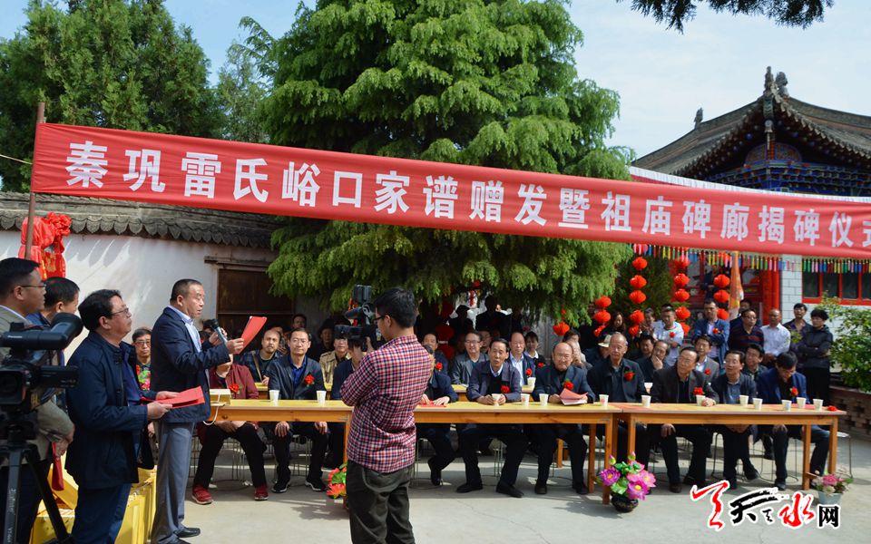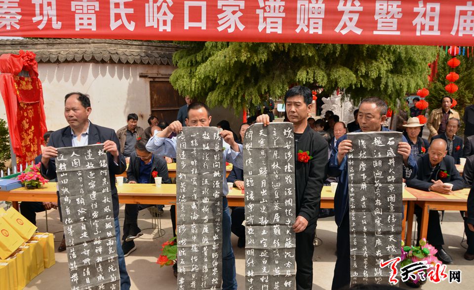 天天天水网讯【记者 张文都】家传祖庭诗书礼易,谱续雷氏春夏秋冬。4月21日,秦巩雷氏峪口家谱赠发暨祖庙碑廊揭碑仪式在麦积区石佛镇峪口村雷氏家庙隆重举行。这意味着秦巩雷氏统谱于全国400多万雷氏家谱,同时,天水市二十一位中书协会员书写的雷氏家谱序文刻勅成二十二块石碑组成的峪口祖庙碑廊落成。