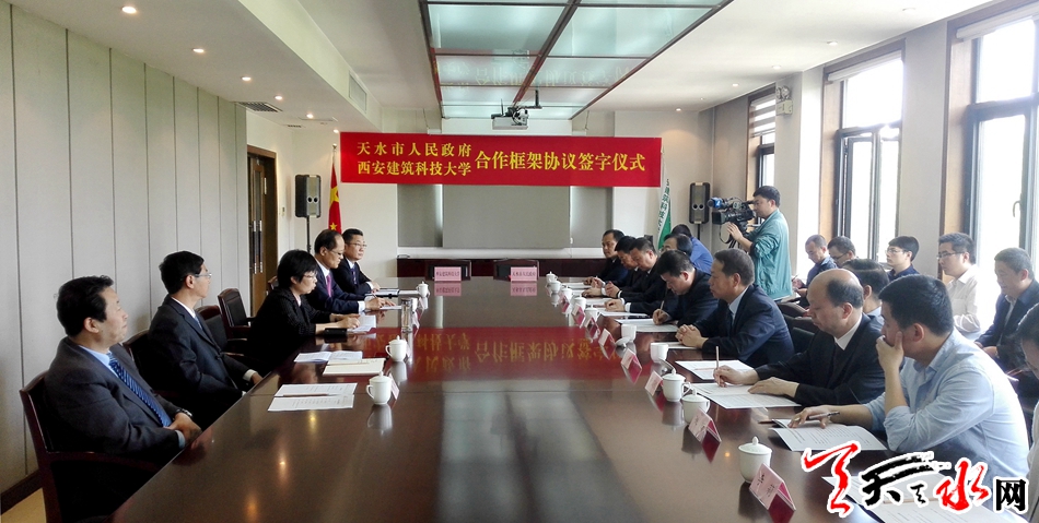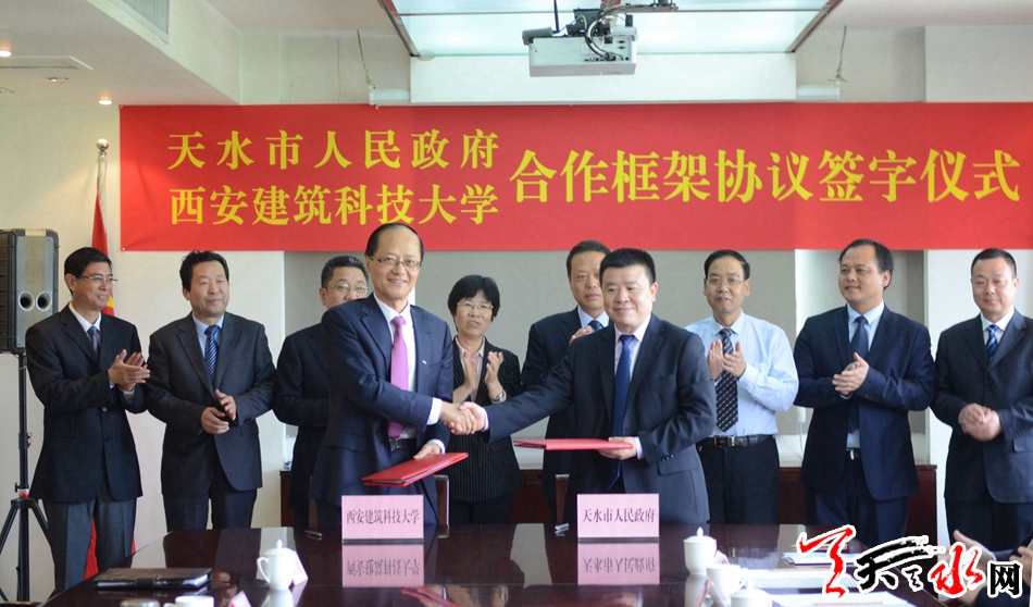 天天天水网西安电【记者杨璟】4月21日,市政府与西安建筑科技大学合作框架协议签约仪式在西安建筑科技大学举行。双方就装配式建筑产业、新型材料、技术创新、人才交流等方面的合作达成了共识。