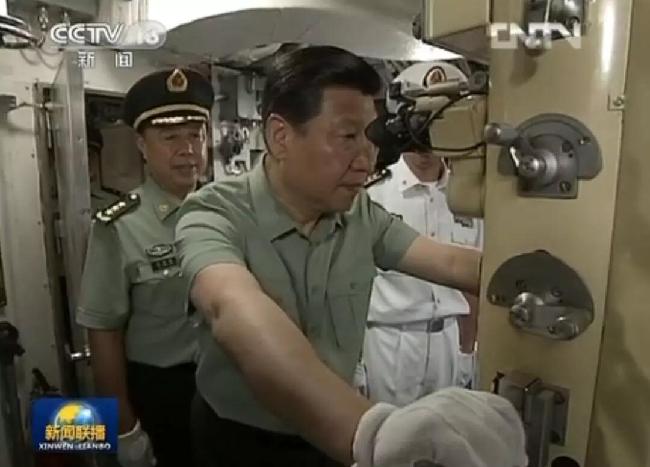 习主席先后视察了我国自行设计建造的最大吨位两栖作战舰艇“井冈山”舰和某新型潜艇。他下舱室、上甲板、进入舰载直升机机舱,了解武器装备性能,询问官兵的训练生活情况,