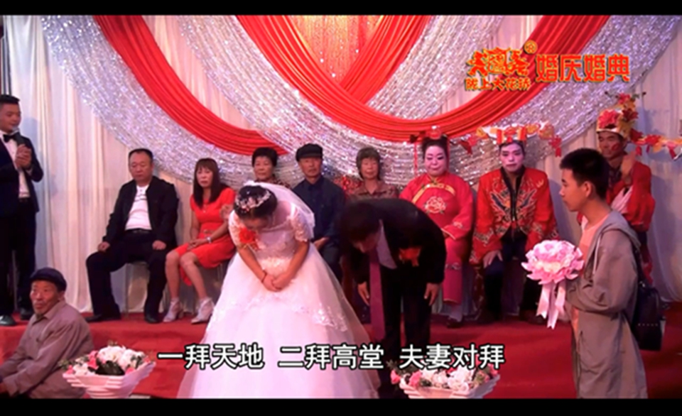 《结婚典礼在农家小院》 作者:元龙陇上大花轿婚纱影楼 申报单位:元龙陇上大花轿婚纱影楼