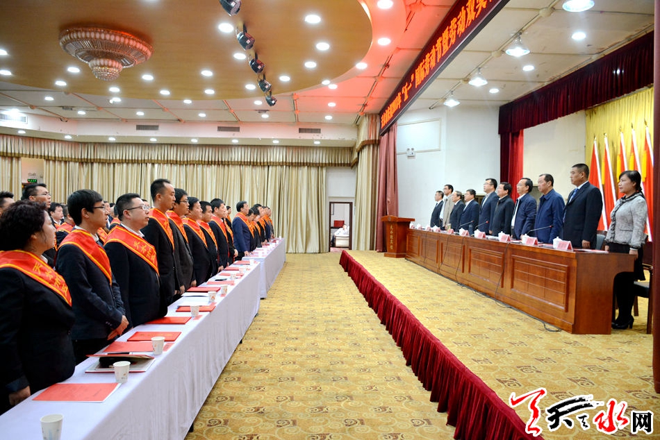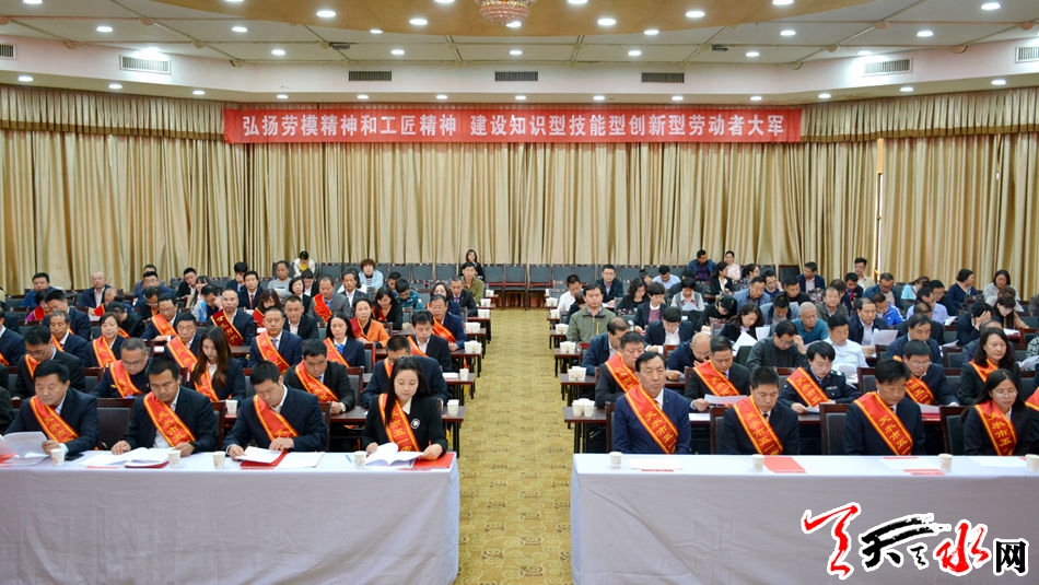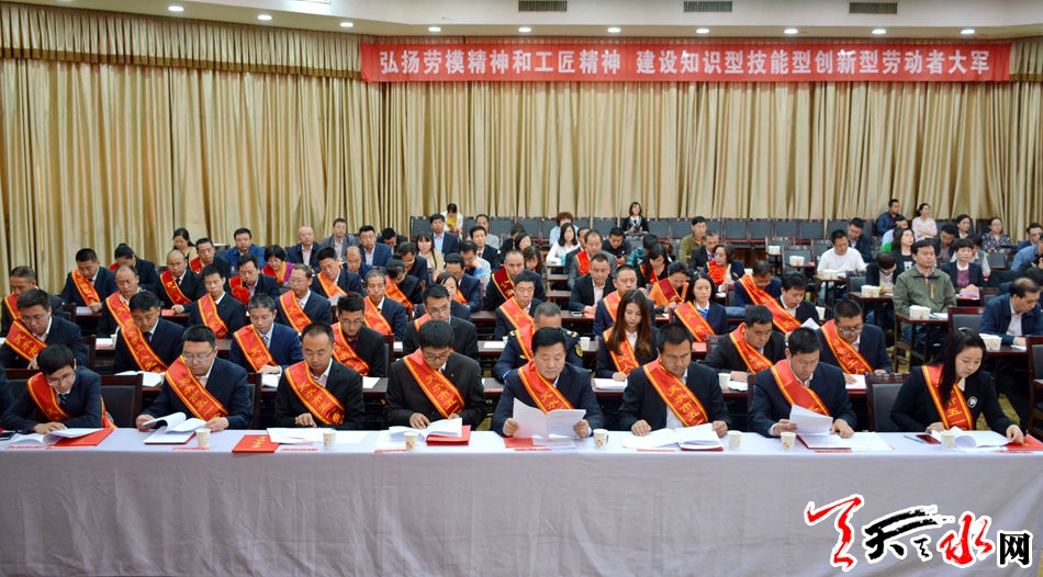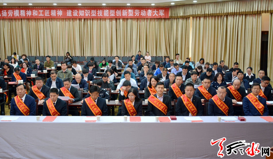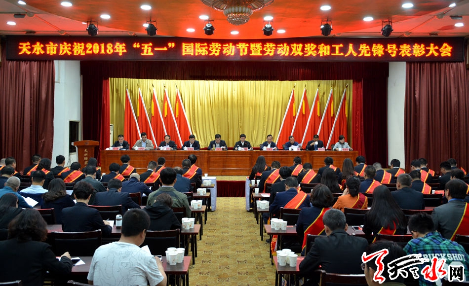 天天天水网讯【记者 胡丽霞】4月26日,我市召开庆祝2018年五一国际劳动节暨五一劳动双奖和工人先锋号表彰大会,表彰奖励荣获五一劳动奖状、奖章、工人先锋号、天水工匠、职工优秀创新成果项目的先进集体和先进个人,大力弘扬劳模精神、工匠精神,在全社会营造劳动光荣、知识崇尚、人才宝贵、创造伟大的良好氛围,进一步团结动员和激励全市广大职工群众,为全面建成小康社会、建设幸福美好新天水建功立业。