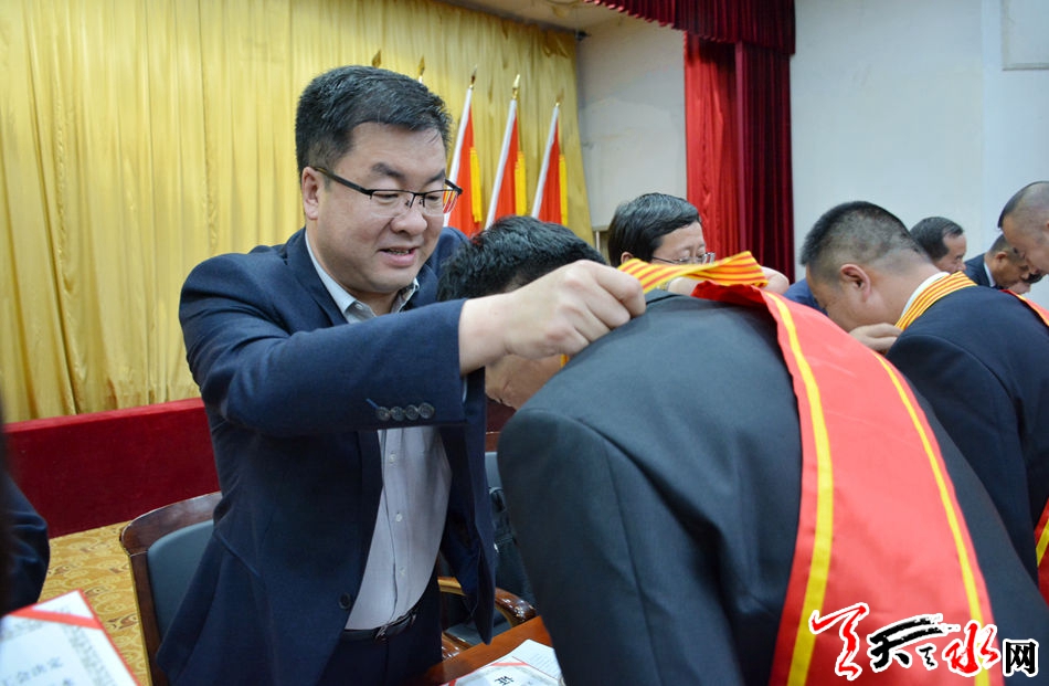 (为荣获天水市五一劳动奖章的获奖者颁奖)