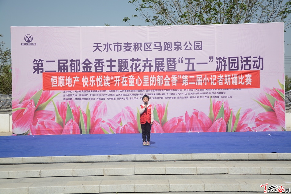 天天天水网讯(通讯员 吴海勇)四月的天水花香袭人,阳光明媚!“至美倾城色,满城肆花香”,伴随着浓烈的春日盛景,备受天水人民关注的马跑泉公园第二届郁金香花展已接近尾声,4月29日,“恒顺地产”杯少儿朗诵大赛在马跑泉公园盛大举办,这个周末,在郁金香花海中为大家带来了最动听的声音。