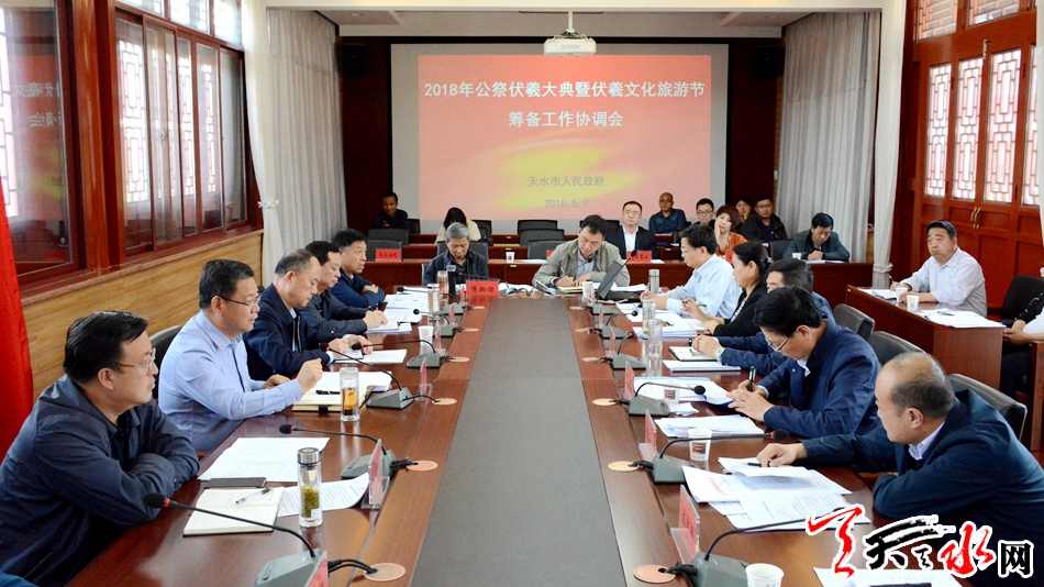 天天天水网讯【记者徐媛】5月2日,副市长张建杰主持召开2018年公祭伏羲大典暨第29届伏羲文化旅游节筹备工作协调会,听取节会各项筹备工作进展情况,协调解决存在的困难和问题。