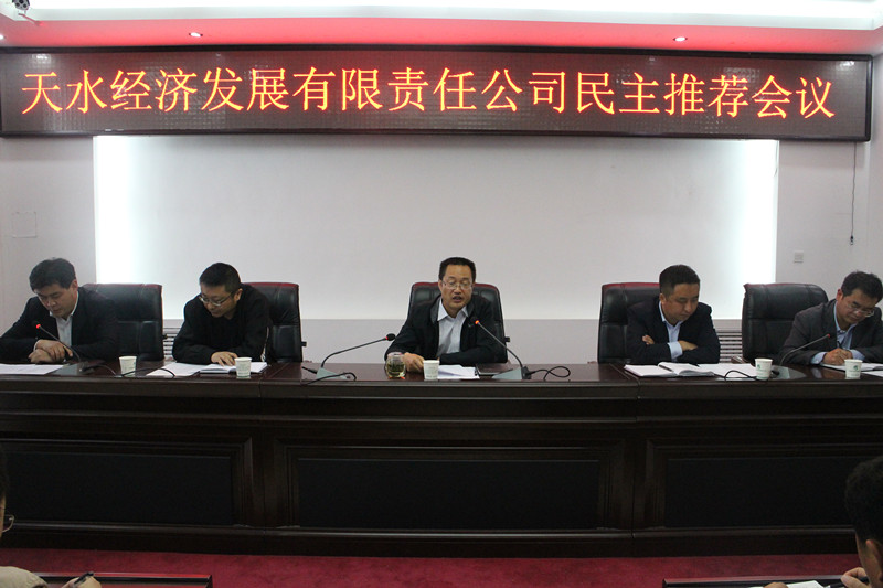 天天天水网讯 为了进一步加强公司领导班子力量,提高工作效率,做好各项重点工作,推进公司持续快速发展,根据开发区管委会工作安排,经济发展公司近日召开民主推荐大会,从公司中层以上人员中民主推荐一名副总经理。开发区人力资源局局长李建林及相关负责人、公司各部室、下属公司全体管理人员共48人参加了会议。