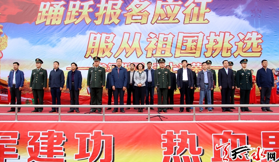 天天天水网讯【记者杨璟】5月8日,2018年天水市大学生征兵工作在甘肃机电职业技术学院启动。副市长王燕、天水军分区政委袁敬伟出席启动仪式。