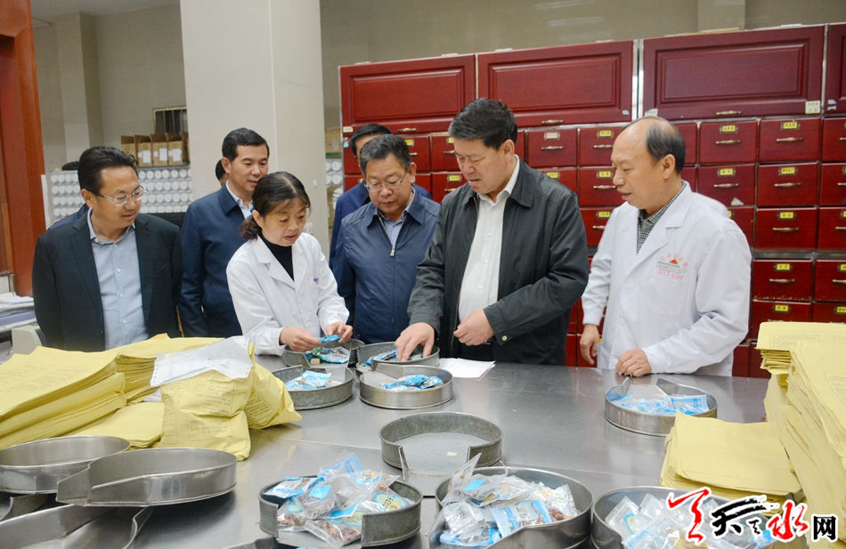 天天天水网讯【全媒体记者吴丽娜】5月10日,市委副书记、市长王军带领市发改、财政、国土、环保、建设、卫计、规划和秦州区主要负责人到天水市中医院,就中医药传承创新工程——中医院内科综合大楼项目进行检查调研。他强调,要认真贯彻党的十九大关于中医药事业发展的精神,积极抢抓大有可为的历史机遇,立足当前,着眼长远,全力落实好中医药传承创新项目,努力通过项目的实施,推动全市大建康产业发展和中医药产业做大做强。