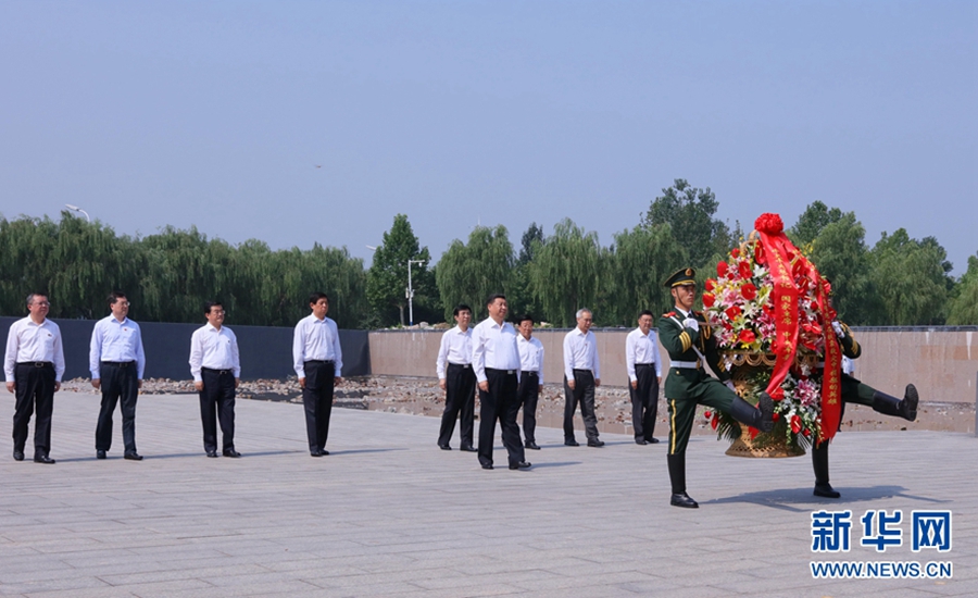 2016年7月28日,中共中央总书记、国家主席、中央军委主席习近平到河北唐山市调研考察。这是习近平在唐山地震遗址公园向唐山大地震罹难同胞和在抗震救灾中捐躯的英雄敬献花篮。 新华社记者 兰红光 摄