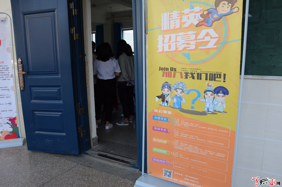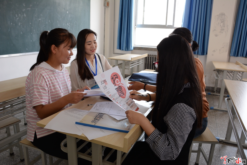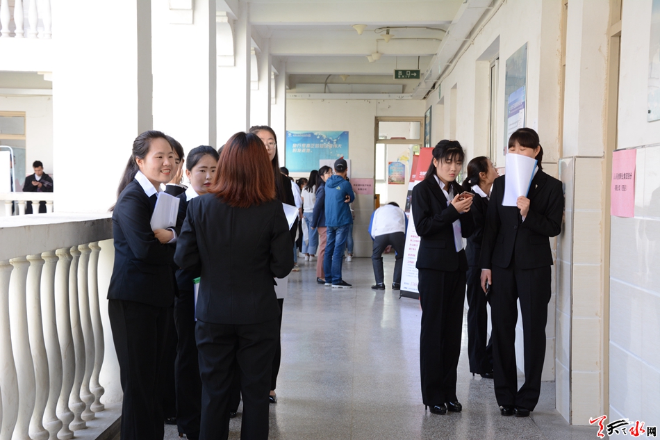 每家招聘单位展位前都挤满了前来应聘和咨询的学生,用人单位耐心介绍从事相关岗位工作的技能要求及薪酬待遇等信息。问到对前来应聘的学生有什么样的要求时,天水交换空间装饰有限公司的招聘负责人李先生说到:“我们更加看重于应聘者对工作的热爱程度,从而决定了他是否能脚踏实地、兢兢业业的做好本职工作。”