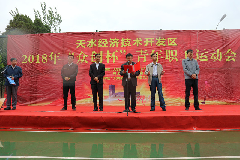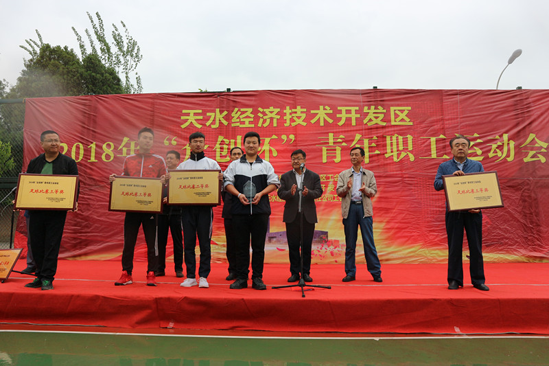 天天天水网讯 5月8日上午,开发区2018年“众创杯”青年职工运动会闭幕式在开发区体育健身中心举行,开发区党工委副书记、工会主席蔡全增出席闭幕式并作了总结讲话。开发区管委会副主任王瑞权及开发区相关部门负责人,本届运动会组委会成员以及裁判员和运动员参加。