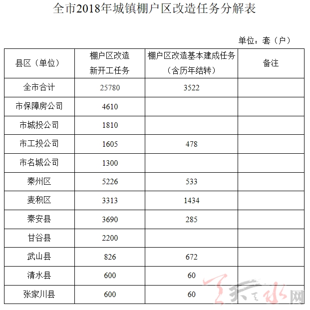 天水市2018年城镇棚户区改造工作实施方案