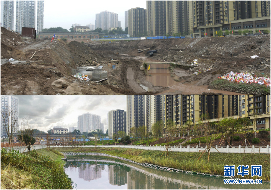 图为跳蹬河治理前后对比。新华网发(王茂松 摄)