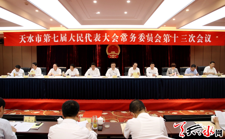 天天天水网讯【全媒体记者马放】5月16日,天水市第七届人大常委会第十三次会议在天水宾馆召开。市人大常委会主任蒋晓强,市人大常委会副主任刘天波分别主持了第一、第二次全体会议。市人大常委会31名组成人员出席会议,出席人数符合法定人数。