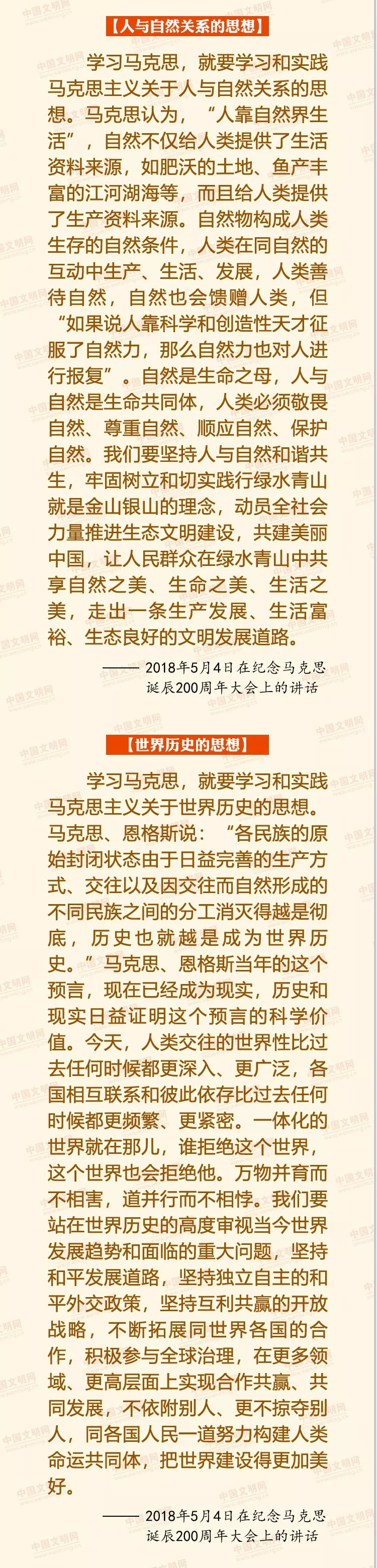 编者按:马克思是全世界无产阶级和劳动人民的革命导师,是马克思主义的主要创始人,是马克思主义政党的缔造者和国际共产主义的开创者,是近代以来最伟大的思想家。中国共产党是用马克思主义武装起来的政党,马克思主义是我们共产党人理想信念的灵魂。习近平总书记在纪念马克思诞辰200周年大会上强调,新时代,中国共产党人仍然要学习马克思,学习和实践马克思主义,高扬马克思主义伟大旗帜,不断从中汲取科学智慧和理论力量,更有定力、更有自信、更有智慧地坚持和发展新时代中国特色社会主义,让马克思、恩格斯设想的人类社会美好前景不断在中国大地上生动展现出来。即日起,中国文明网推出《好好学习·习近平谈马克思》系列摘编,精选部分重要论述,与广大网友一起学习,共同领略马克思主义伟大的真理力量。今天推出第四期《学习马克思》。