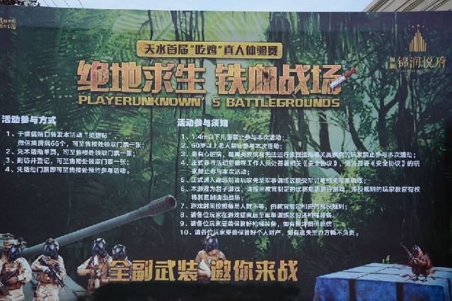 作为目前线上最火爆的竞技游戏,《绝地求生》真人版实战体验赛在天水的首次亮相,让天水玩家真正感受到“只缘身在此山中”的真人吃鸡体验。首次出现在视野中的真人战场硝烟到底燃到什么样的地步?没能亲临的鸡友赶紧先睹为快吧!