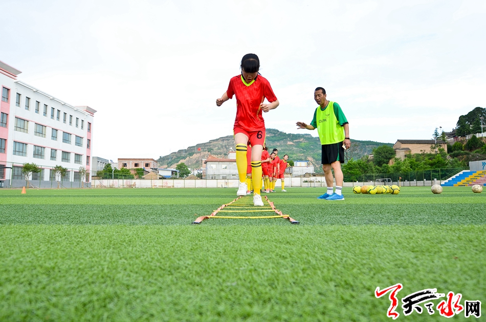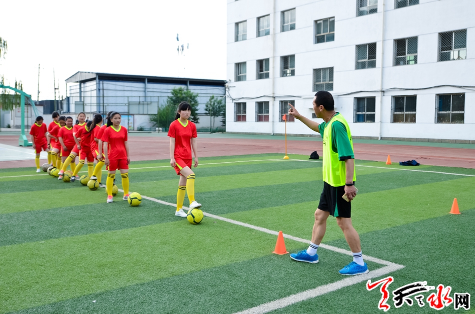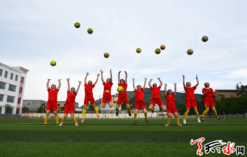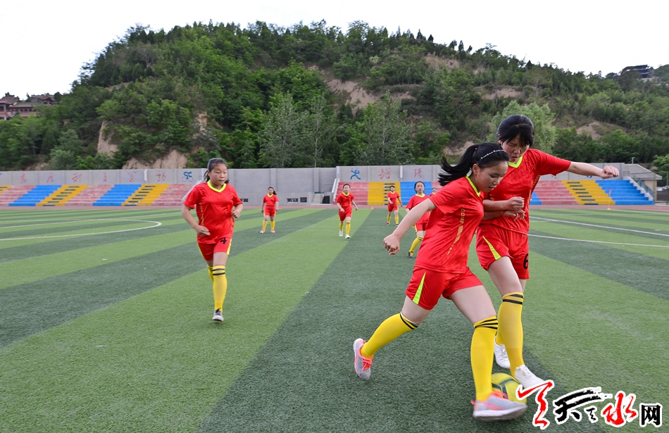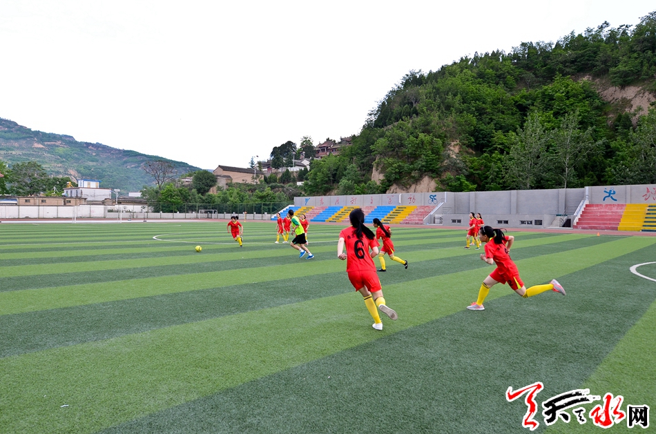 “叮铃铃……”下午第二节课铃声一响,麦积区潘集寨学校足球场上立刻热闹起来。女子足球队的队员们身形矫健,在绿茵场上飞奔,足球在她们脚下呈现出优美的曲线。