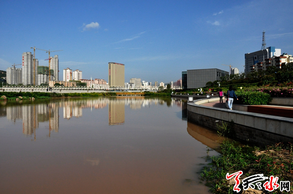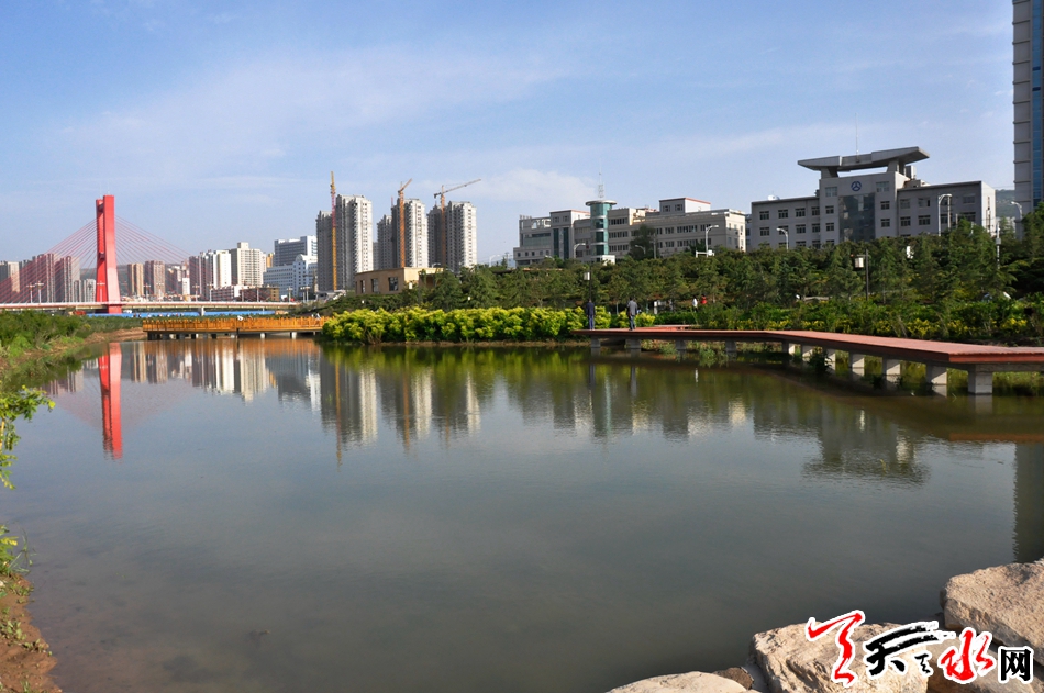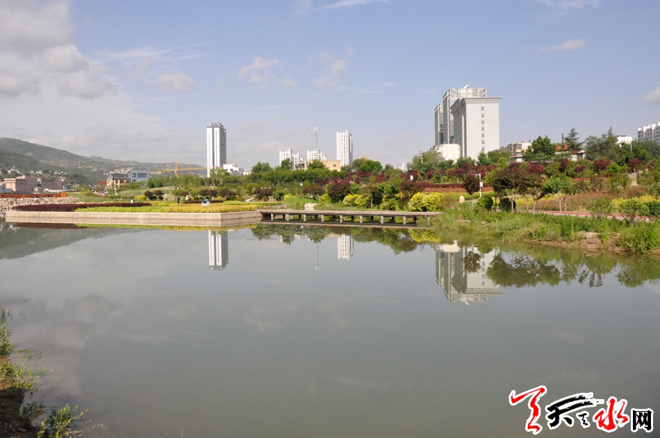 十多年前,当第一台挖掘机开进沉寂过久的藉河河床,天水开始了一场为“天水”塑“魂”的工程--退河造湖。经过几年的建设,6道橡胶坝5片水域的人工湖形成,被市民亲切的称为“天水湖”。实现了“天上注水”和现代人巧夺天工的对接,旧貌换新颜!天水湖两岸花草共茂,曲径通幽,美不胜收。晨曦四季风景如画。