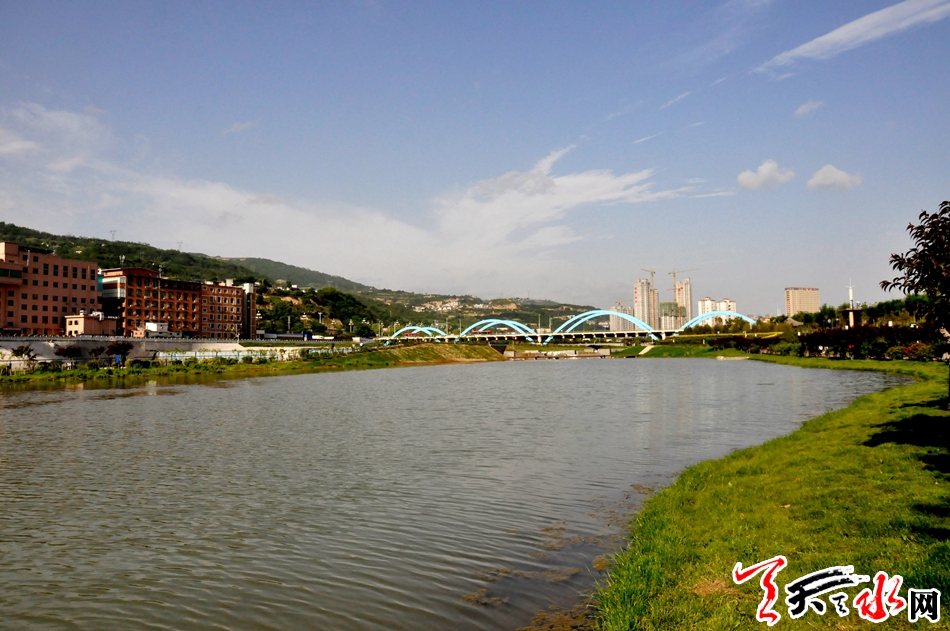 2015年,秦州区在天水湖已有的基础上,提出藉河生态综合治理一期续建工程,旨在实施“生态美区”战略、建设“宜居宜业宜游”城市。工程着重突出生态特色,治理范围西起已建成的藉河工程末端6#橡胶坝,东至五里铺水家沟入汇处,治理长度约4公里,绿化总面积11.56万平方米,概算总投资4.3亿元。该工程自两年多前开工建设以来,相继完成了滨河生态公园绿化树木栽植、景观配套设施建设、子堤及两岸堤防工程建设、截污箱涵续建、钢坝闸、橡胶坝等内容。经过两年的紧张施工,整体工程已经基本完工投入使用。滨河公园跌水源头、水镜花台、水上栈道、十里花堤等主要景观节点每天都吸引着许多市民在此休闲散步、欣赏美景。