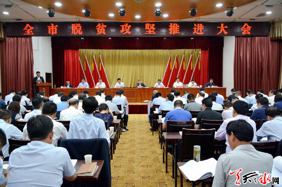 天天天水网讯【全媒体记者王晓馨】5月30日,市委、市政府召开脱贫攻坚推进大会。市委书记王锐强调,要坚持以习近平新时代中国特色社会主义思想和党的十九大精神为指导,坚决贯彻落实党中央和省委的决策部署,认清形势、统一思想,抓好突出问题整改和重点任务落实工作,扑下身子苦干实干,咬定目标攻坚克难,举全市之力打赢打好精准脱贫攻坚战。