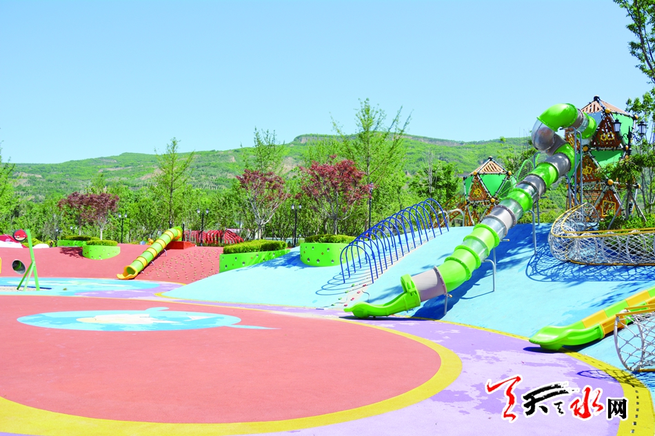 活泼可爱的卡通图案围墙,充满童真童趣的滑滑梯、风车等娱乐设施,多种色彩的场地布局……这是记者5月29日在秦州区孙家坪村成纪儿童公园施工现场看到的场景。