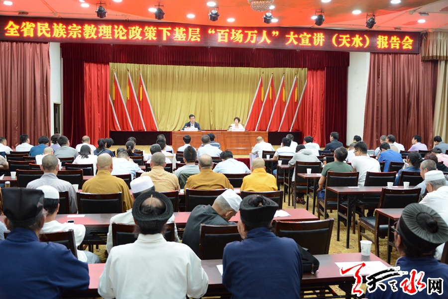 天天天水网讯【记者马哲】5月29日,由省委统战部副部长、省宗教局局长王国志为组长的省委统战工作领导小组第三宣讲组来我市,开展全省民族宗教理论政策下基层“百场万人”大宣讲报告。