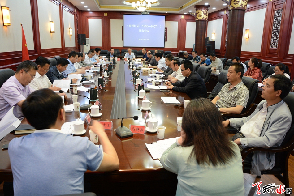 天天天水网讯【记者马哲】5月31日,天水市地方志编委会召开《秦州区志1985-2007》终审会议。市委常委、秦州区委书记雷鸣主持会议,市地方志编纂委员会副主任、副市长张建杰出席会议。