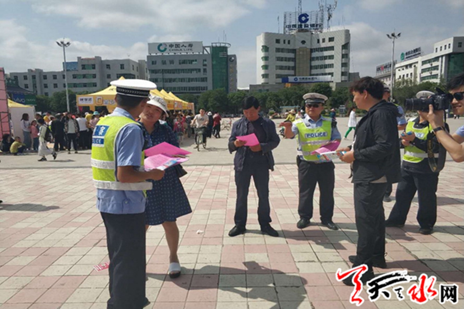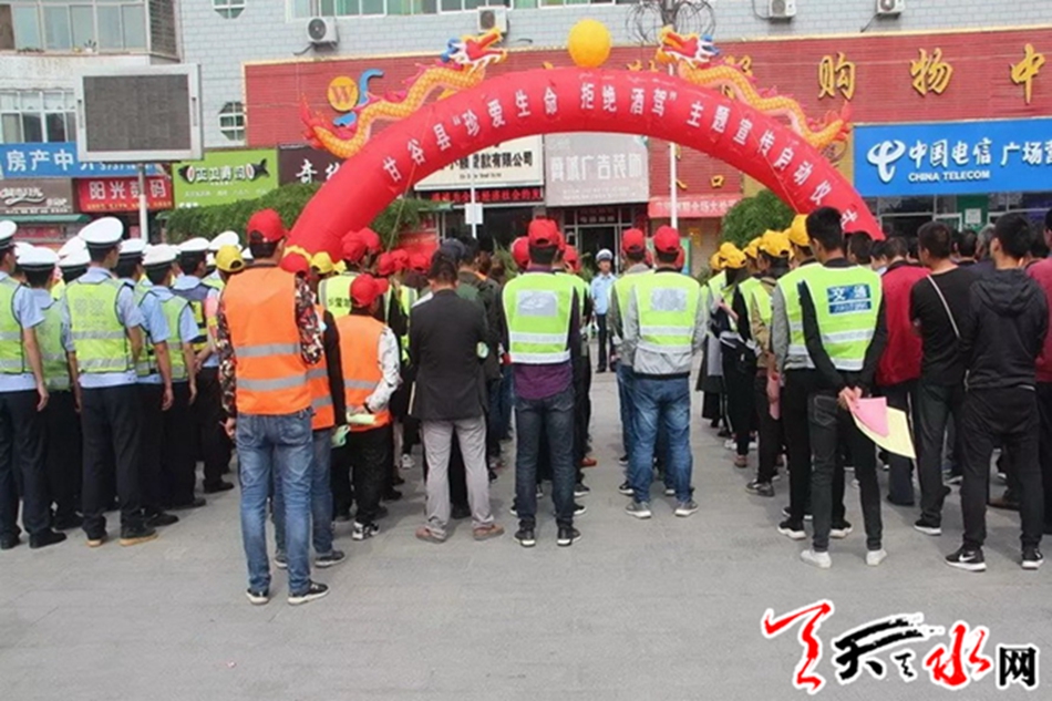 6月2日上午10时,甘谷县在大十字广场开展以“珍爱生命、拒绝酒驾”为主题的宣传活动。