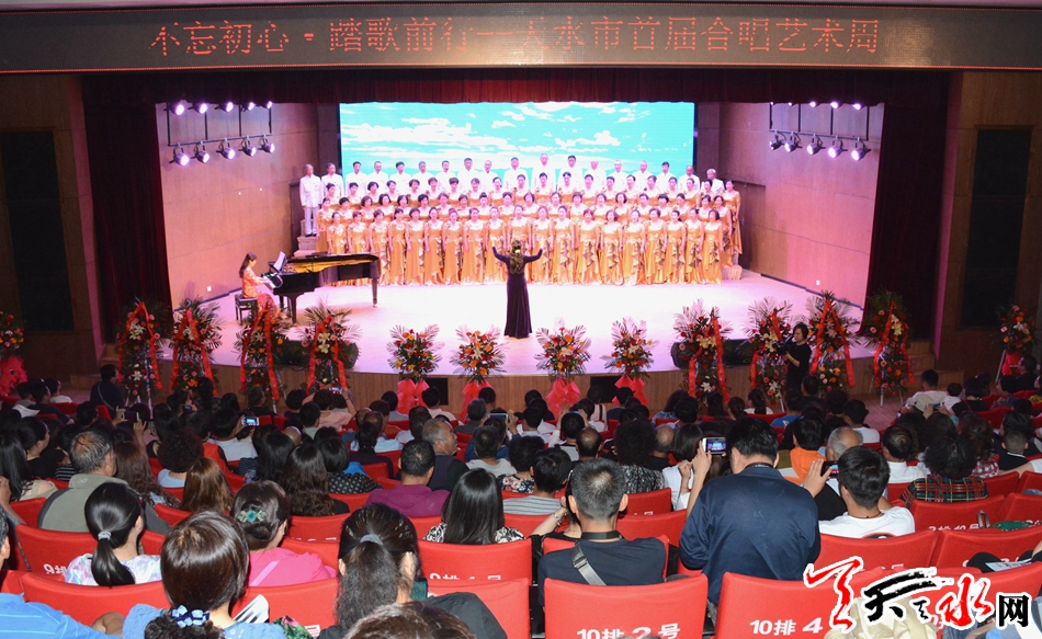 6月2日晚,由市音乐家协会、合唱协会等单位举办的题为“不忘初心·踏歌前行”合唱音乐会在天水师范学院音乐厅举行。来自我市的7个合唱团的演员们为现场观众献上了一道丰盛的音乐大餐。据悉,此次系列合唱音乐会为期3天,分别为“不忘初心·踏歌前行”、“致音乐一我的深情为你守候”和“春天的故事”为主题。当晚,市政协副主席郭明兴出席了活动。 记者 马凯 摄