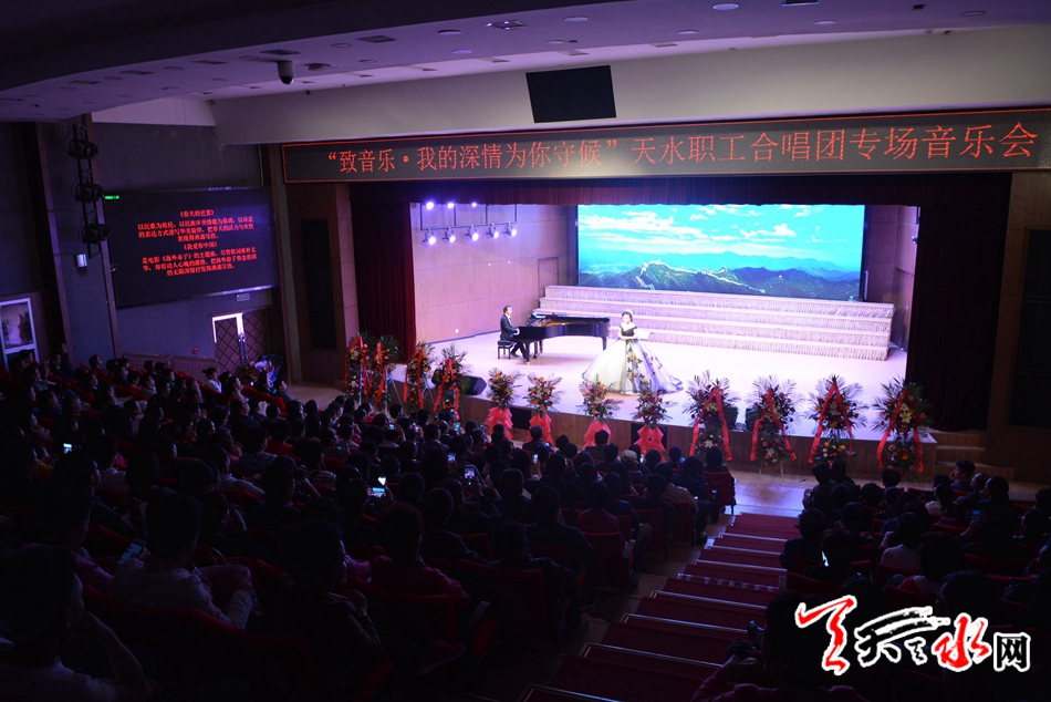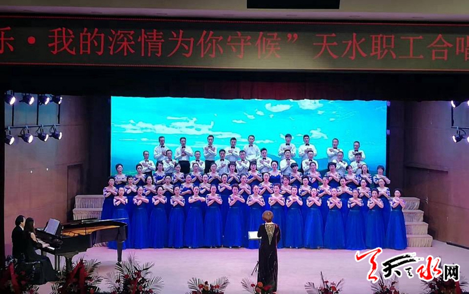 天天天水网讯【记者何慧娟】6月3日晚,由中共天水市委宣传部、天水市文化和旅游局、天水市文联、天水市音乐家协会主办,天水市合唱协会、民进天水市委员会、甘肃臻美和声文化传媒有限公司承办的“不忘初心•踏歌前行——天水市首届合唱艺术周”第二场天水市职工合唱团专场音乐会——“致音乐•我的深情为你守候”在天水师范学院音乐厅开幕。