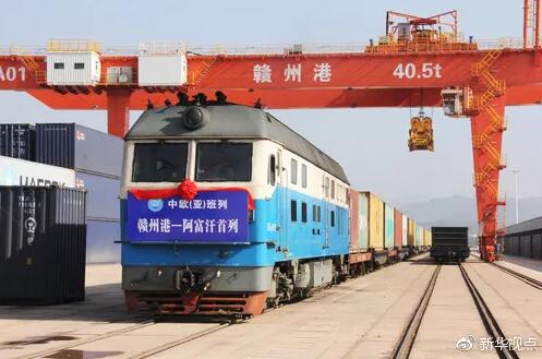 这是2017年12月18日首列江西赣州港至阿富汗中亚班列发车 新华社发(杨晓明 摄)