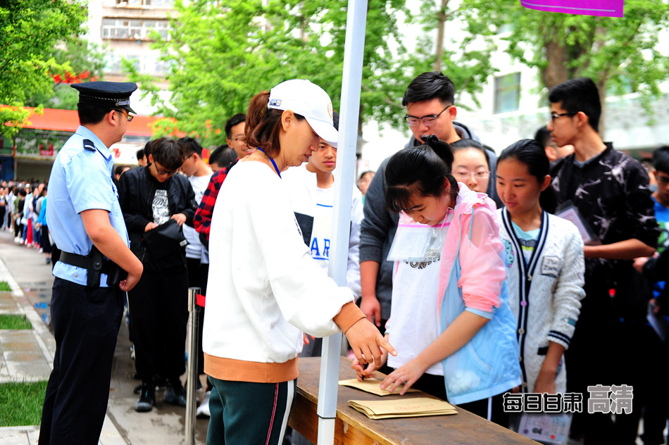 兰州一中考点,考生接受安全检查。每日甘肃网记者韦德占/摄