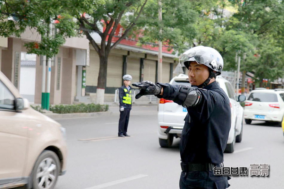 交警在平凉一中考点附近指挥交通,保障通行顺畅。每日甘肃网记者兰天/摄