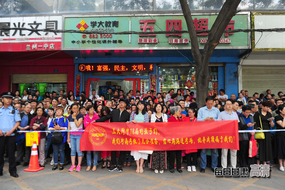 考场外的家长、老师在等候考生。每日甘肃网记者韦德占/摄