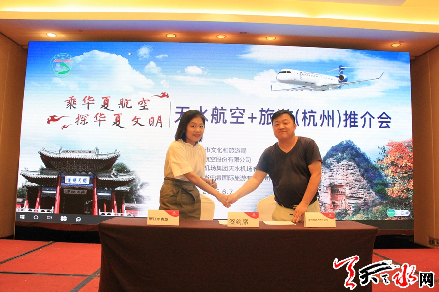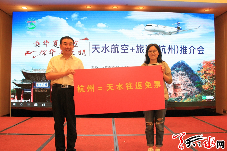 天天天水网杭州电【记者韩铁英】6月7日,“乘华夏航空 探寻华夏文明”天水航空+旅游推介会在杭州举行。本次活动由天水市文化和旅游局、华夏航空股份有限公司和西部机场集团天水机场有限公司共同主办。