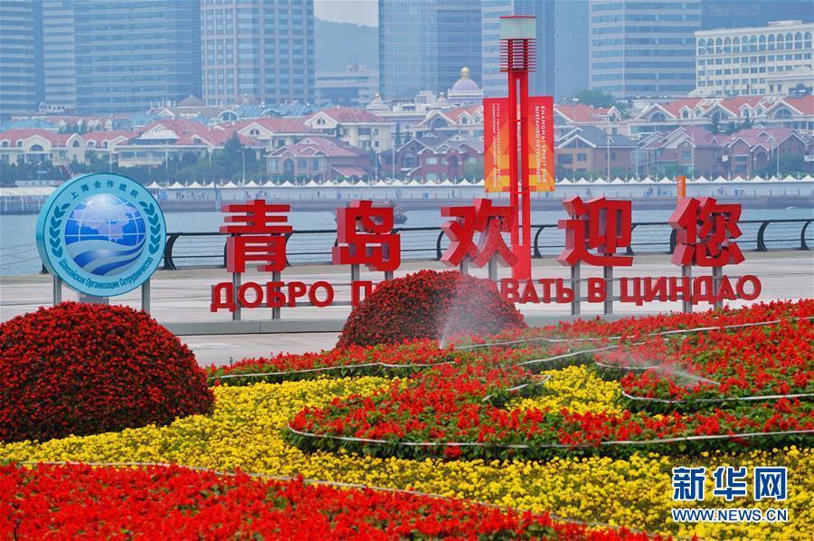这是6月4日拍摄的青岛市南区的一处花坛。6月9日至10日,上海合作组织成员国元首理事会第十八次会议及相关活动在青岛举行。过去5年,上合组织砥砺前行,政治互信更深厚、务实合作更深入、国际影响更深远。新华社记者邢广利摄
