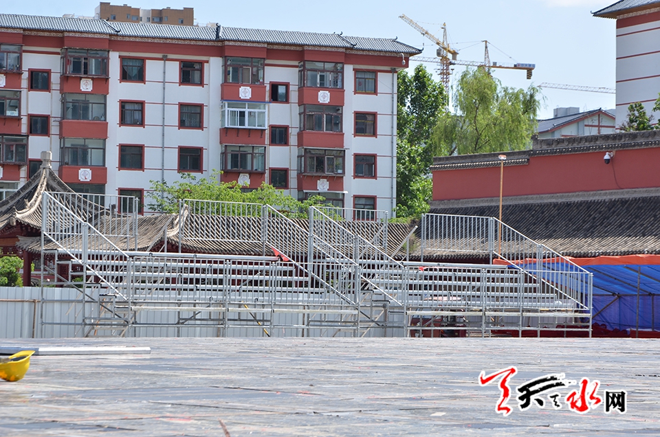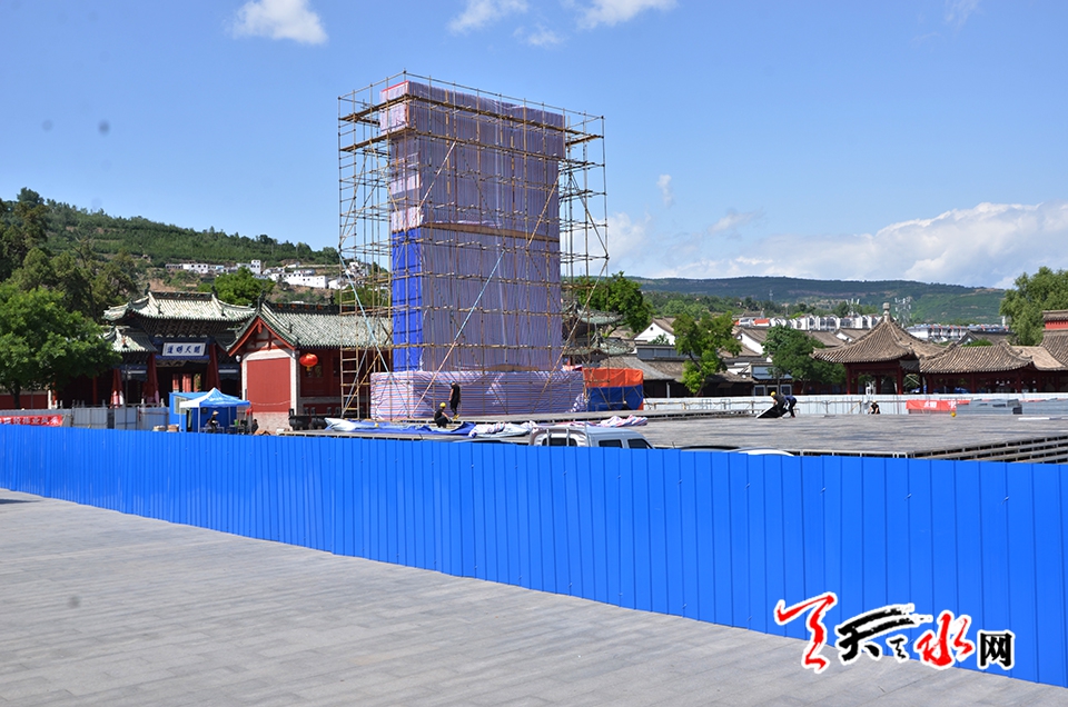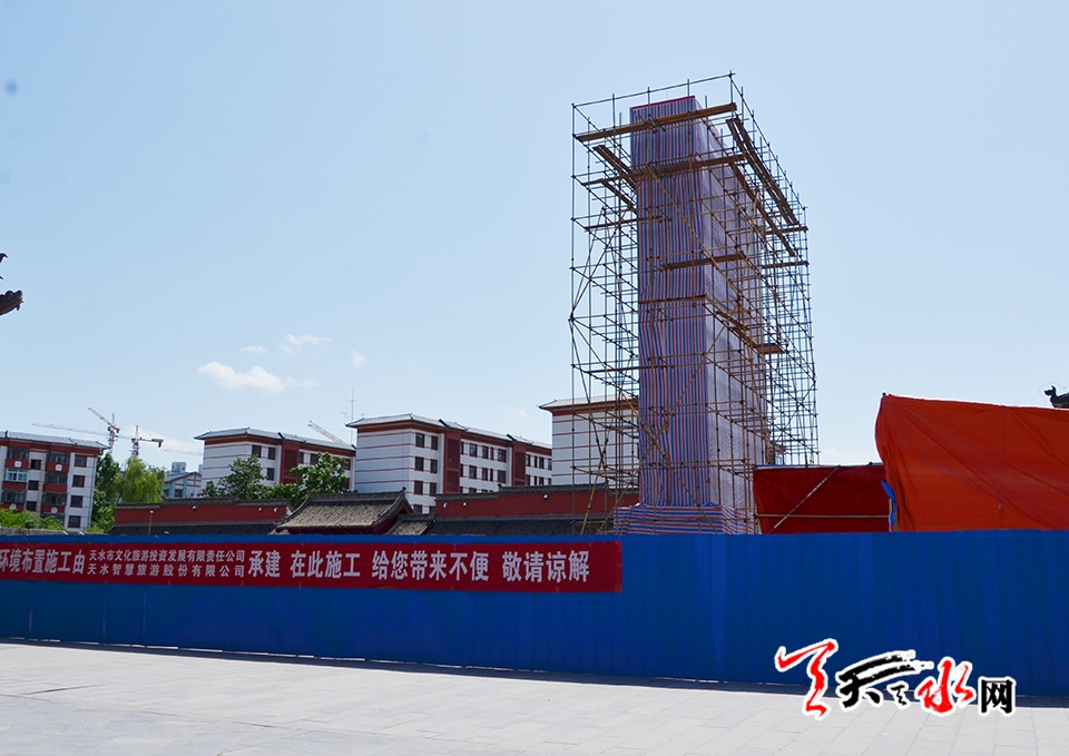天天天水网讯(见习记者罗馨)备受关注的2018(戊戌)年公祭中华人文始姐伏羲大典暨第29届中国天水伏羲文化旅游节即将拉开大幕,6月8日,记者在伏羲广场主会场舞台搭建现场看到,2018(戊戌)年公祭中华人文始祖伏羲大典祭祀丰碑主体已搭建完毕。
