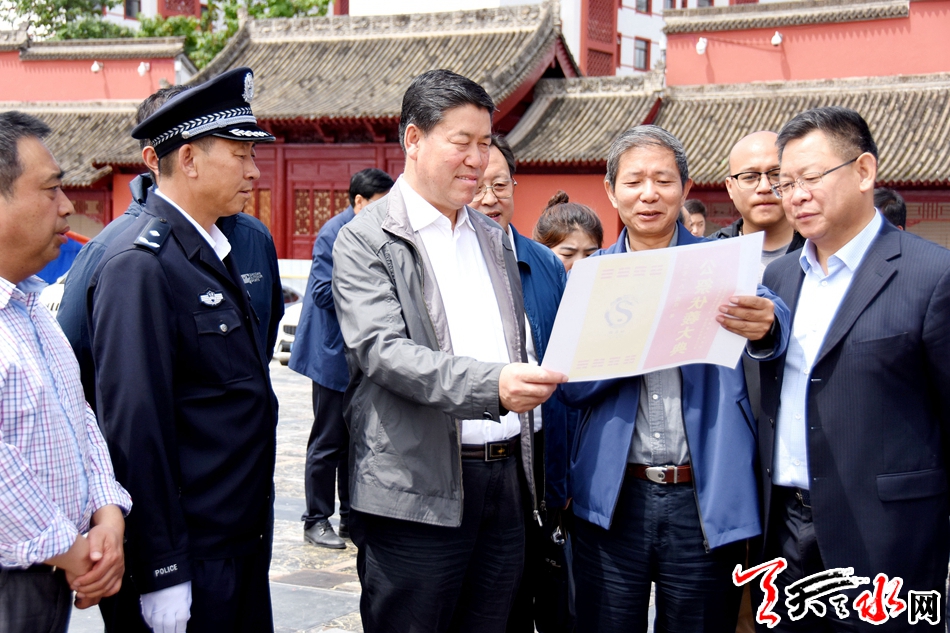 督察中,王军一行先后来到天水宾馆、天水会展中心、天水南站、伏羲广场,重点对节会接待线路、重要地段环境整治、展览展销、接待服务及公祭伏羲大典现场环境布置、大典仪式筹备、安全保卫等各项节会筹备工作进展情况进行了现场督察,听取了相关情况汇报,并就进一步做好筹备工作提出了指导意见。