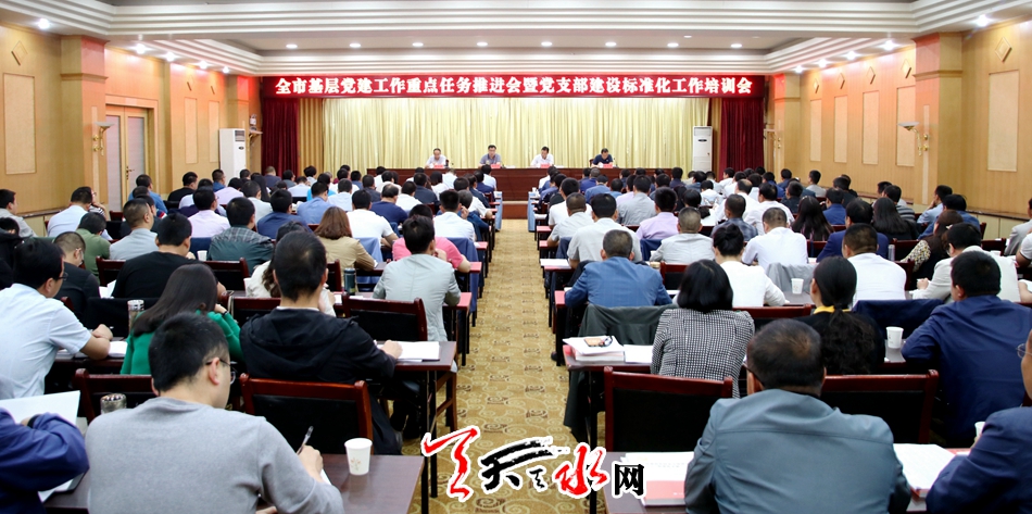 天天天水网讯【记者童强】6月8日,全市基层党建工作重点任务推进会暨党支部建设标准化工作培训会召开。会议传达学习全国、全省基层党建重点任务推进会精神,对今年全市基层党建各项重点任务进行再安排再部署,同时全面启动党支部建设标准化工作,并对主要业务骨干进行培训。市委常委、组织部长王正茂出席会议。