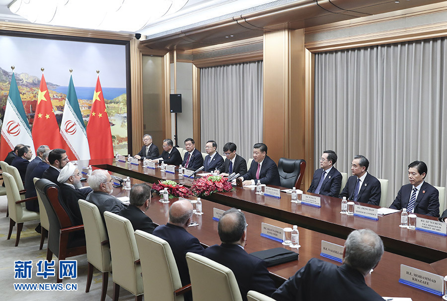 习近平欢迎鲁哈尼访华并出席上海合作组织青岛峰会。习近平指出,我2016年对伊朗进行国事访问期间,中伊两国宣布建立全面战略伙伴关系。两年多来,双方密切合作,全面落实我和总统先生达成的共识。双方各领域合作取得丰富成果,人文交流日益密切。中伊关系具有深入发展的潜力。中方愿同伊方一道努力,共同推动中伊全面战略伙伴关系行稳致远。
