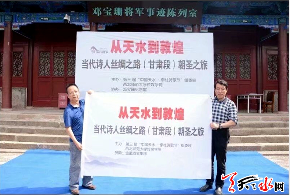 6月9日,采风团成员与王若冰、王元忠、周舟等天水市著名诗人相聚南郭寺邓宝珊纪念馆,举行了“从天水到敦煌——当代诗人丝绸之路朝圣之旅”诗歌朗诵会。