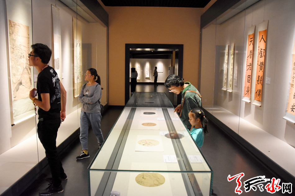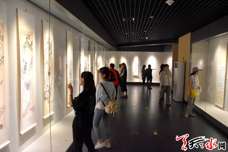 6月12日,市民在天水市博物馆临时展厅观看海上风嘉兴博物馆藏海派书画精品展。