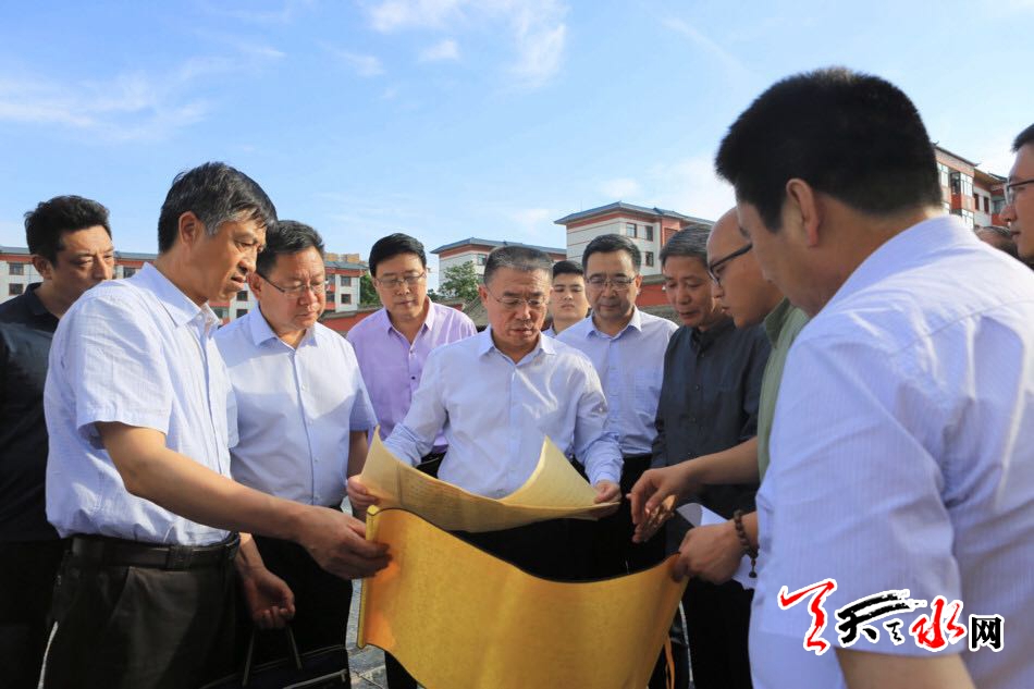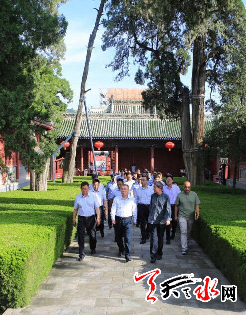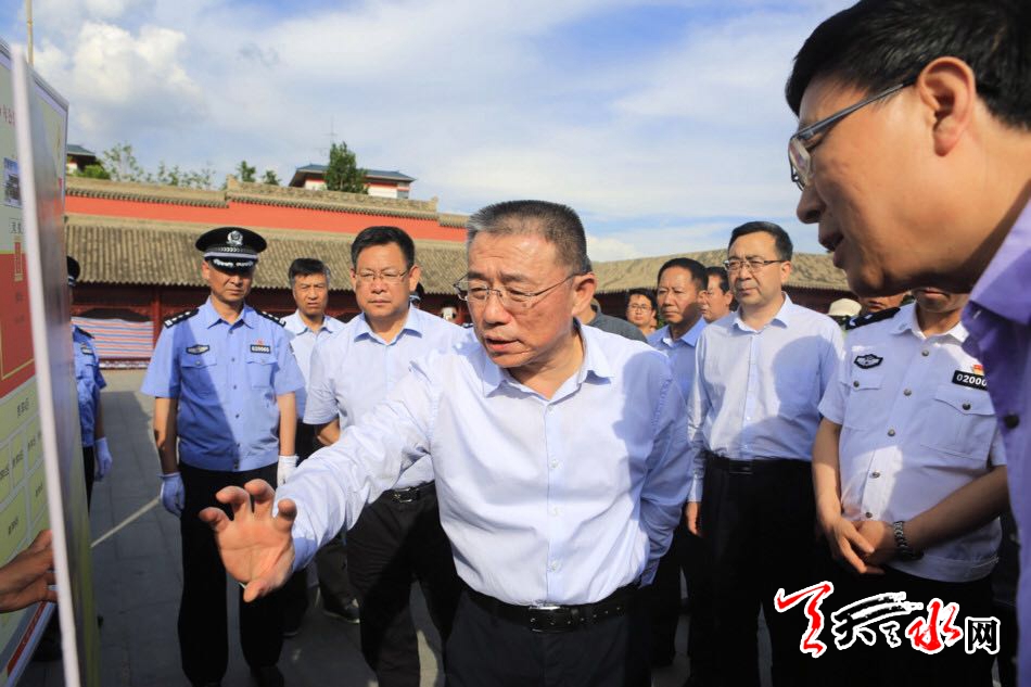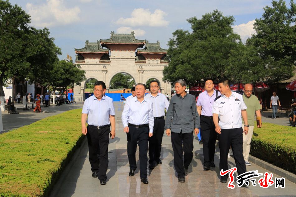 天天天水网讯【全媒体记者王晓馨】6月12日,市委书记王锐带领市节会办、公安、消防、文化旅游及秦州区、麦积区负责人,对伏羲庙和伏羲广场环境整治、公祭大典现场布置、安保部署等重点工作进行了督查。