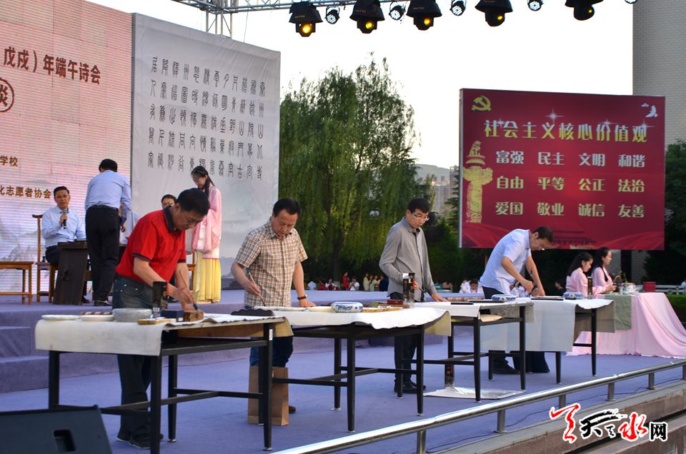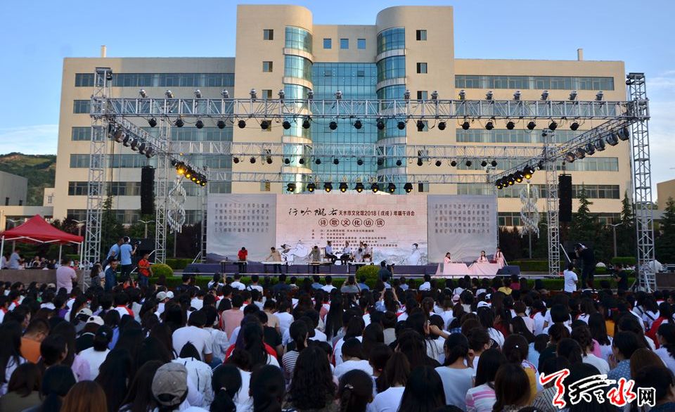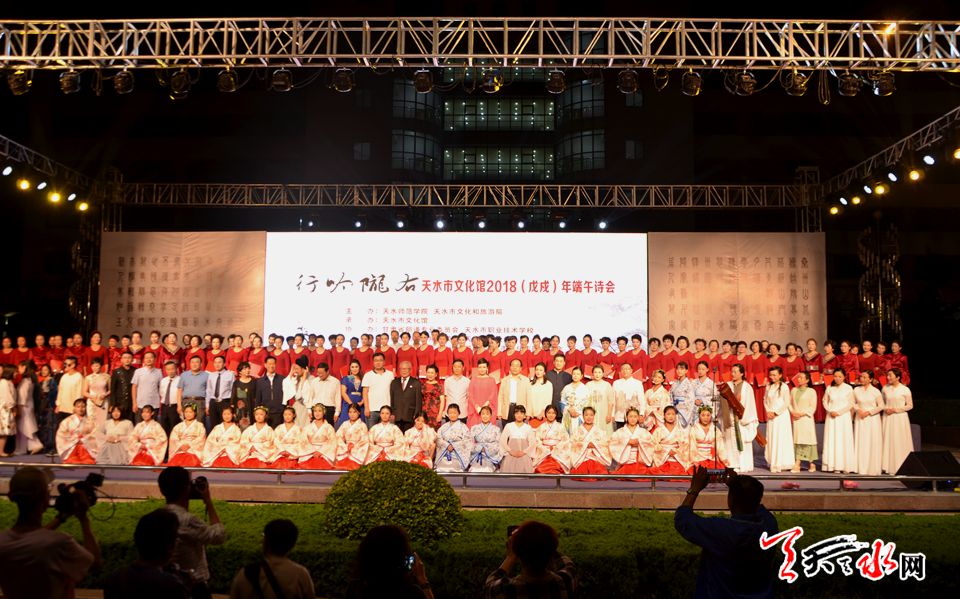 天天天水网讯【记者 张文都】端午,一个诗意芬芳的节日;天水,一座诗意盎然的城市。6月12日晚,“行吟陇右”2018(戊戌)年端午诗会在天水师范学院文化广场隆重举行。各届嘉宾、诗人、学者欢聚一堂,以诗、书、画、乐、舞等多种艺术形式,吟咏古今,缅怀先贤,共度端阳,抒发对祖国与家乡的热爱之情。