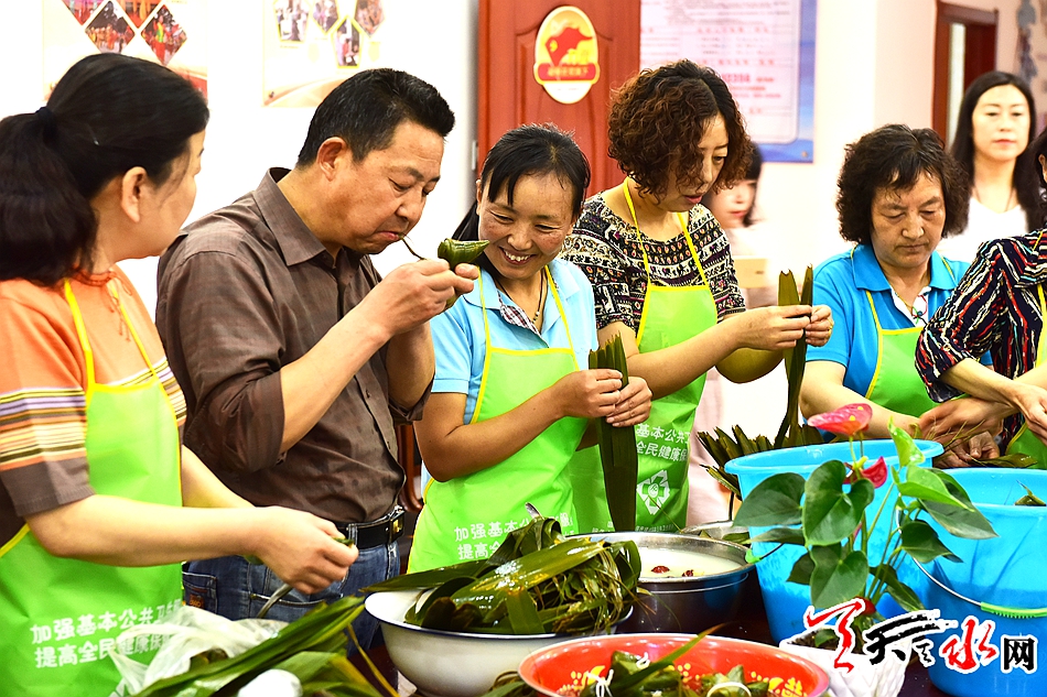 6月13日上午,秦州区大城街道进步巷社区居民在社区一起包粽子、制作荷包。当日,该社区举办了主题为“粽香飘社区,共叙邻里情”端午节活动。社区党员和社区工作人员将包好的粽子送到社区困难户和志愿者巡逻人员手中。